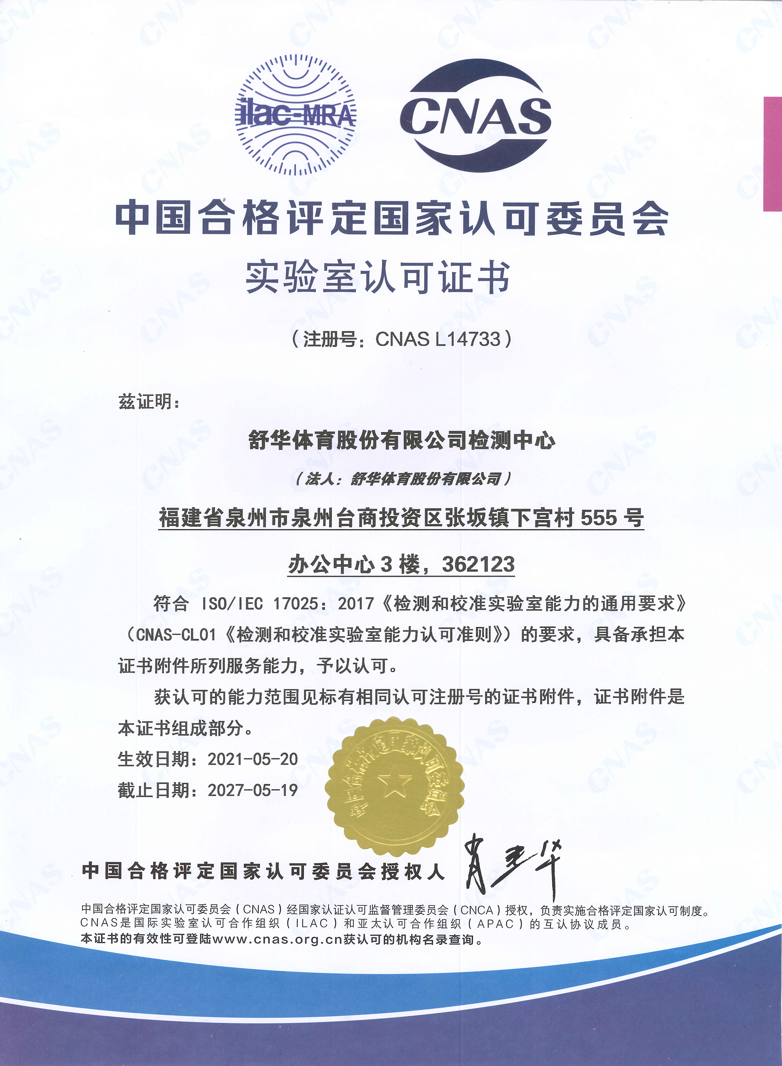 2021 中国合格评定国家认可委员会实验室认可证书 中国合格评定国家认可委员会 认可证书 查看